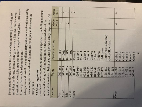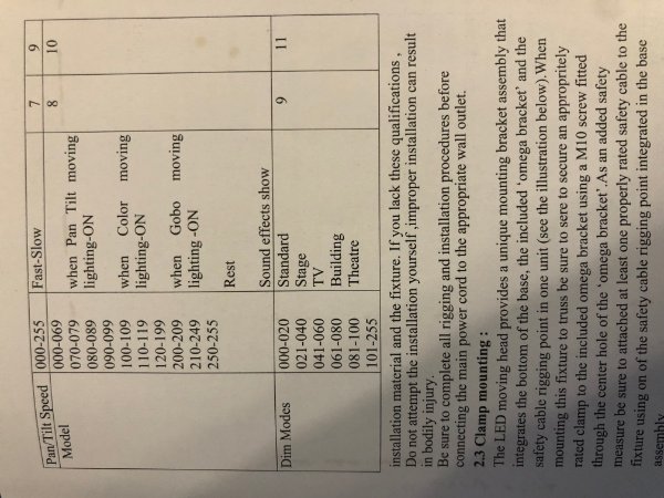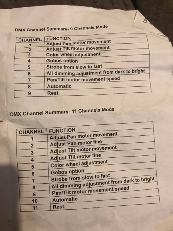 The images of the manual you posted show a 9 channel and an 11 channel mode for your instrument. The channel assignments are different so your instrument will not respond to the fixture file earlier in this thread as you expect.