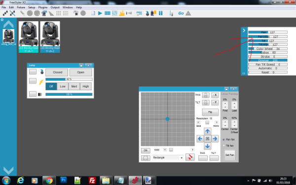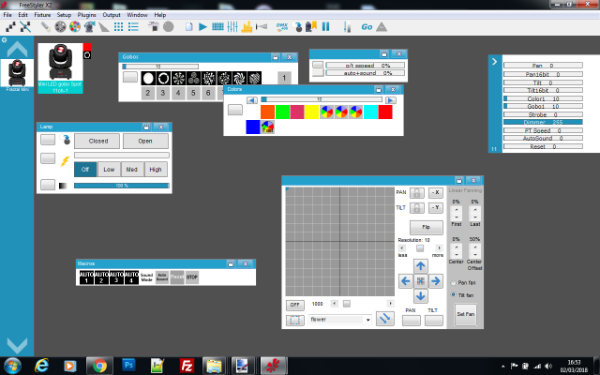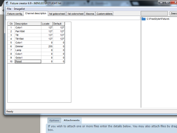 If you will determine the DMX channel values for the Color Wheel I will update the fixture file so that a colors window can be opened which will assist in your programming.