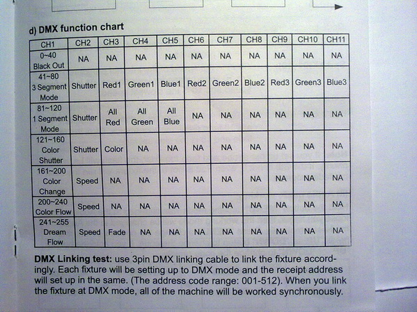 Thats a good reason.power-button wrote:That is no option for me, because I just bought this Device because of the Chase function with the 3 segments. With 4 of them its a great effekt.You need to set channel 1 fixed to 41 ("3 segment mode") and never change it. Then channel 2 is the shutter for all the 3 RGB's. At least, thats what I assume looking at your image posted earlier.