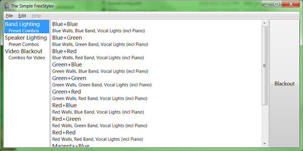 Setting up the Simple Freestyler Program, I created a set of 20 sequences, each one is a preset combination of colors. Teaching the non-lighting team members how to run the Simple Freestyler program is a simple 2 minute lesson and then they're off and running without even having a chance to cause a wreck!