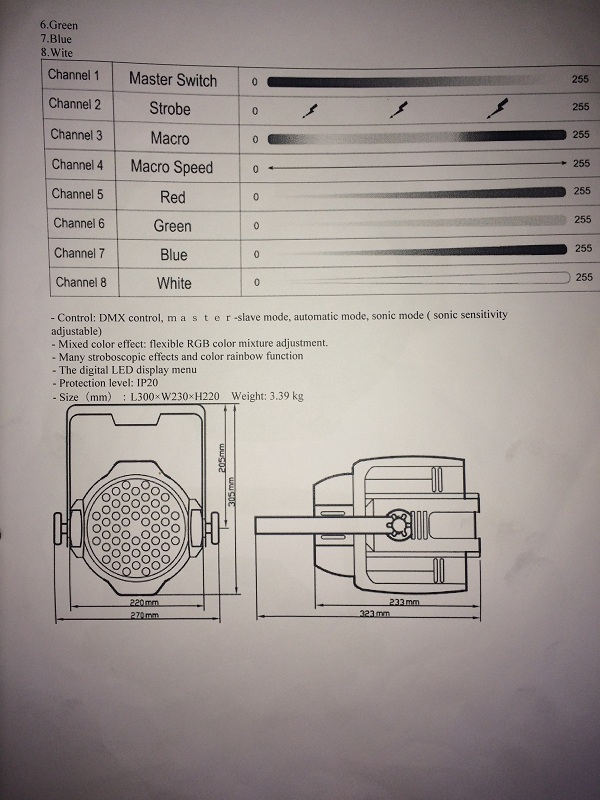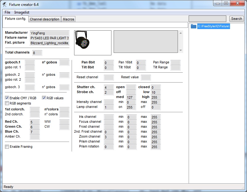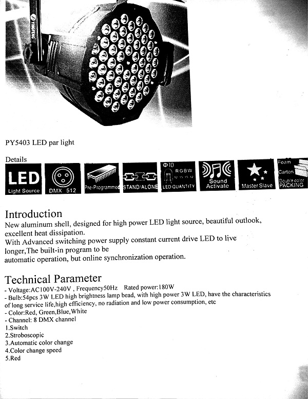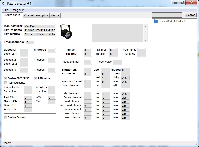i need help with simple light PY5403 LED par light, i already try to create the fixture by my self, but seen like it have something wrong. and in this fixture, how can i put mood music? i mean for the light to follow music?