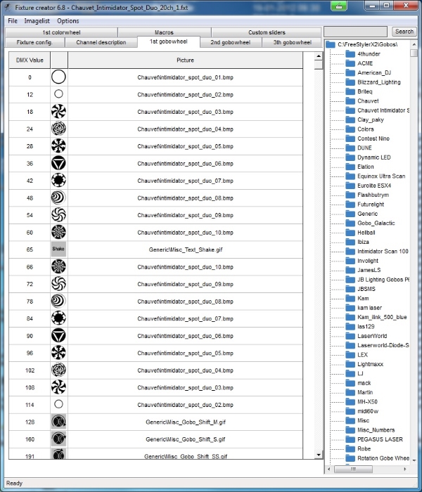 I tried to import it and when I opened it the gobo tabs and color tabs was not present though I in the config tab could see that the gobo channels was defined.
