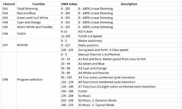 I bought a similar LED light as the Chauvet Mini Kinta. The Lixada one is I believe 8 channel. Here is the link and in the video you can see the manual and the DMX channels. You have to hit the 'pause' to see the manual. I do not have it and need the profile. I tried to create one but not perfect.