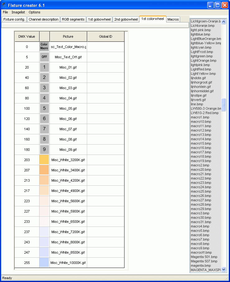 Channel 6 is used for color macro and white control. This control is with fixed values. This means that this control can be done in macro. However they are related to colors and therefore they are made in the color wheel tab.