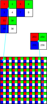 Note: The pixel order may be different. Here it is From Left to Right, Top to Bottom but I have not hat a Revo 4 available and have therefore not been able to verify this.